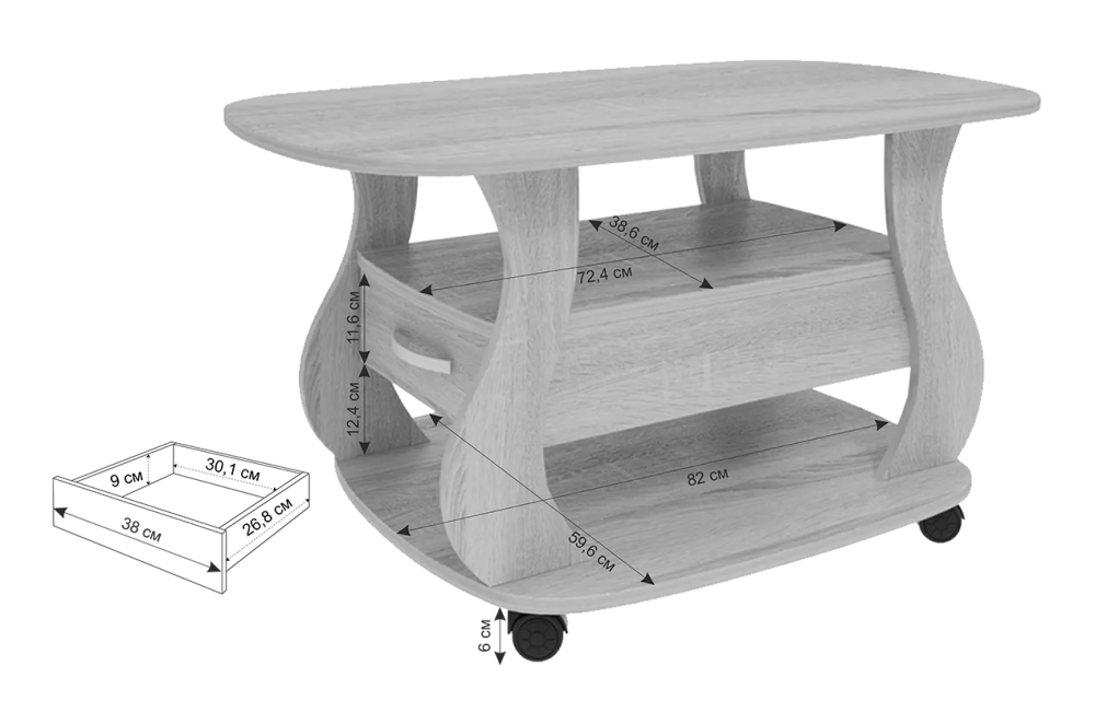 Этот столик станет отличным дополнением к вашему интерьеру и позволит удобно хранить аксессуары и другие вещи. Особенность этой модели - шариковые направляющие в ящиках для бесшумного и плавного движения.